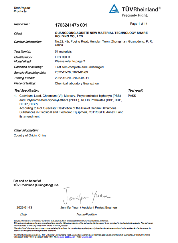 - Guangdong AOKETE New Material Technology Share Holding CO.,LTD